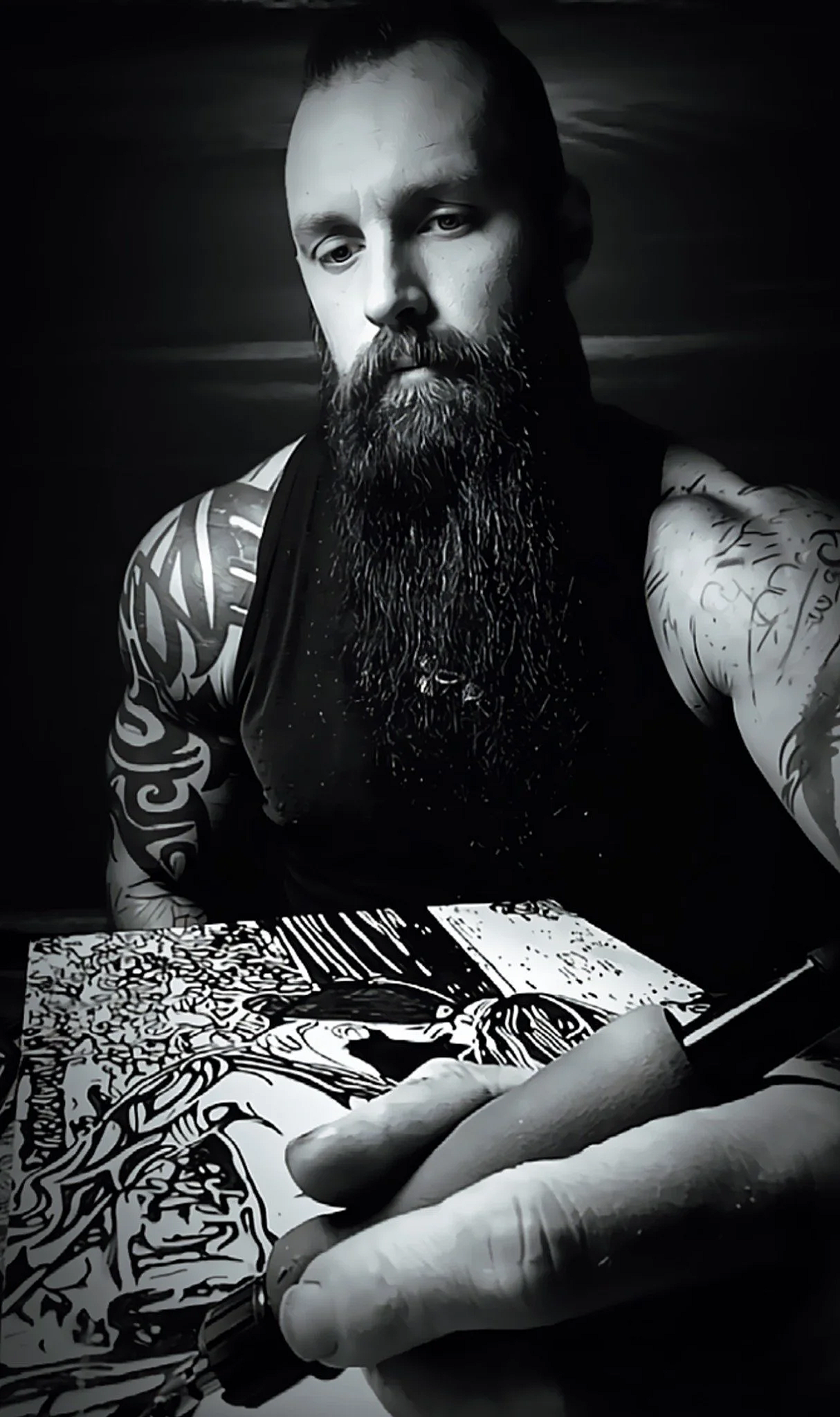 Mohawk Wyatt is a disabled combat veteran and former U.S. Army Airborne Infantryman whose work as a contemporary pyrography artist is shaped by direct experience with violence, consequence, survival, and transformation. Working under Mohawk Wyatt Creations, located in Aurora Colorado, Wyatt creates original, one-of-a-kind wood-burned artworks that confront trauma, desire, moral ambiguity, and the permanent imprint of lived experience.